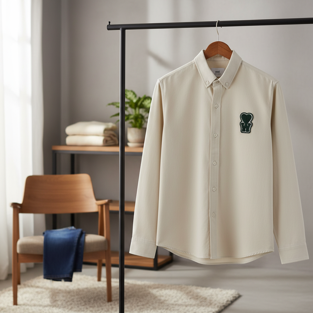 Ami Paris Beige Heart Logo Cotton Hoodie