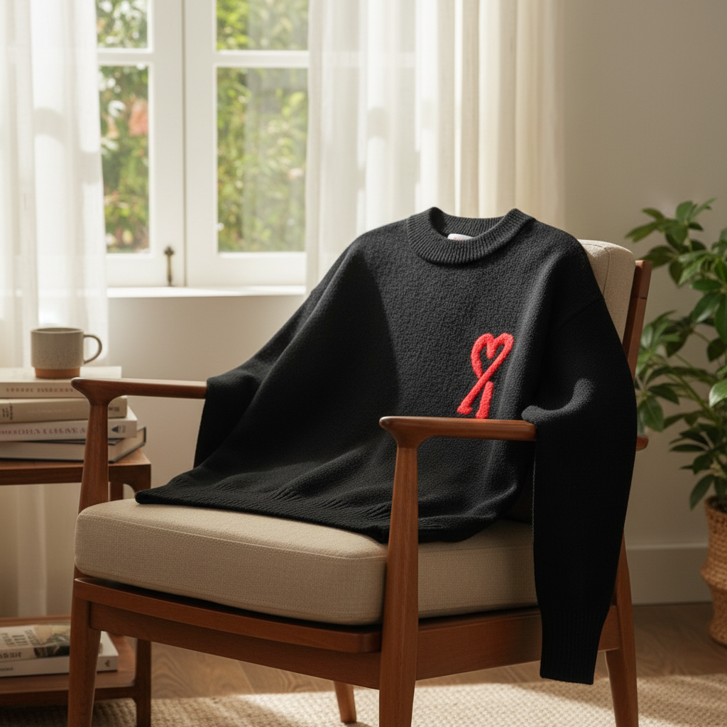 Home / Hoodies/Sweaters/ Ami Paris Black Heart Logo Knit Sweater