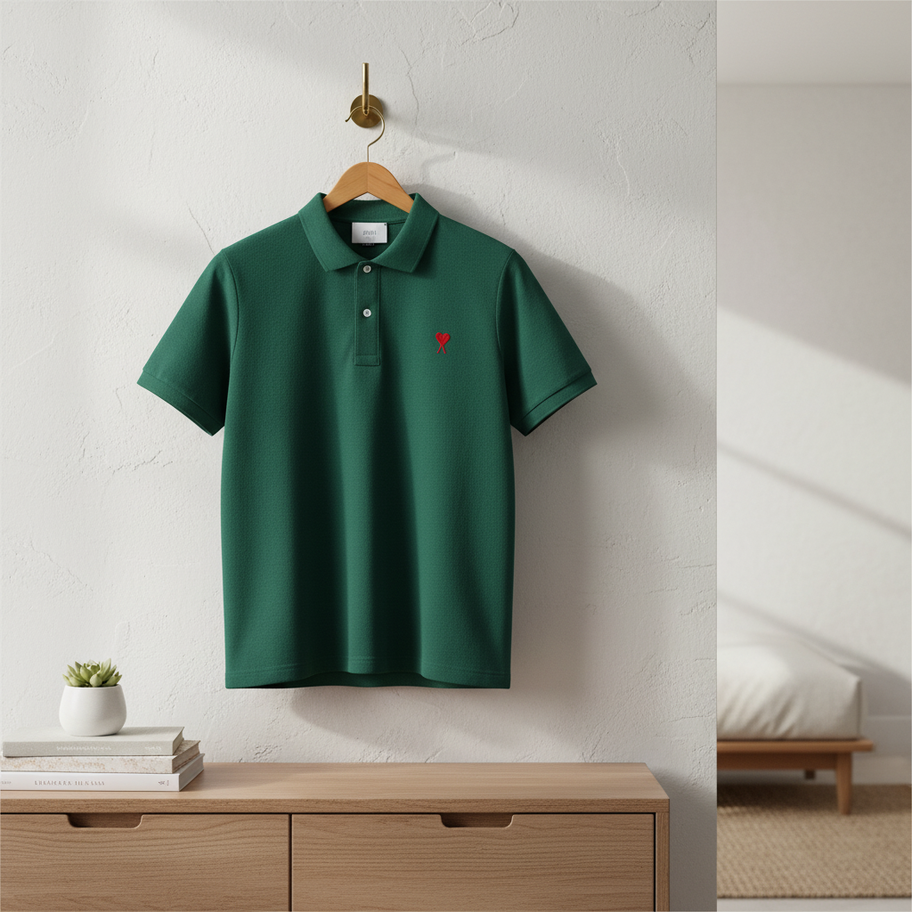Home / T-Shirts/ AMI Paris Green Heart Logo Polo Shirt Men