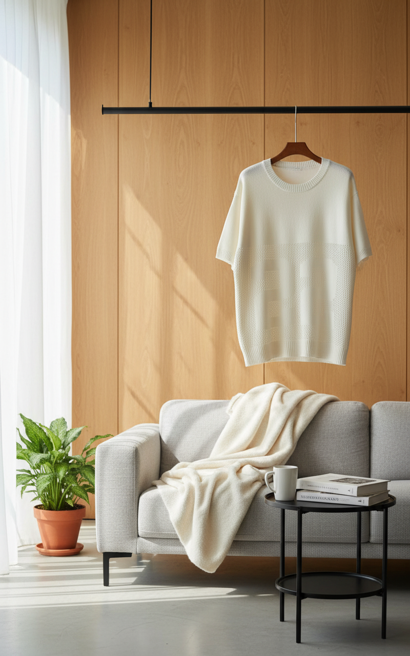 Amiri White Knit T-Shirt features breathable fabric, crew neck design, hollow hem with “22” pattern, unisex street style perfect for casual wear with comfort and fashion combined.