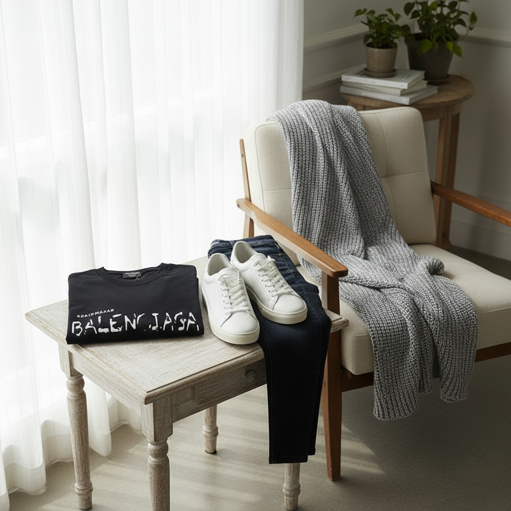 Balenciaga black unisex T-shirt, made from premium soft breathable cotton, features hand-written style logo prints front and back, modern streetwear design for casual and fashionable everyday looks.