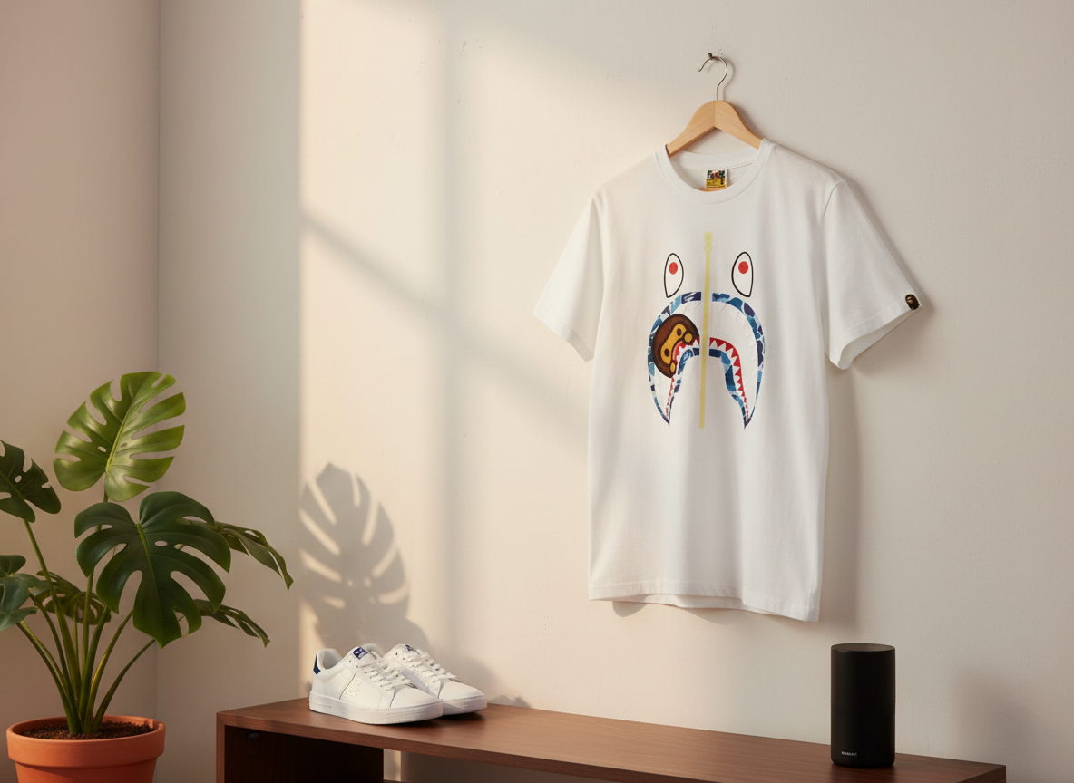 BAPE Shark Face White Cotton Graphic T-Shirt