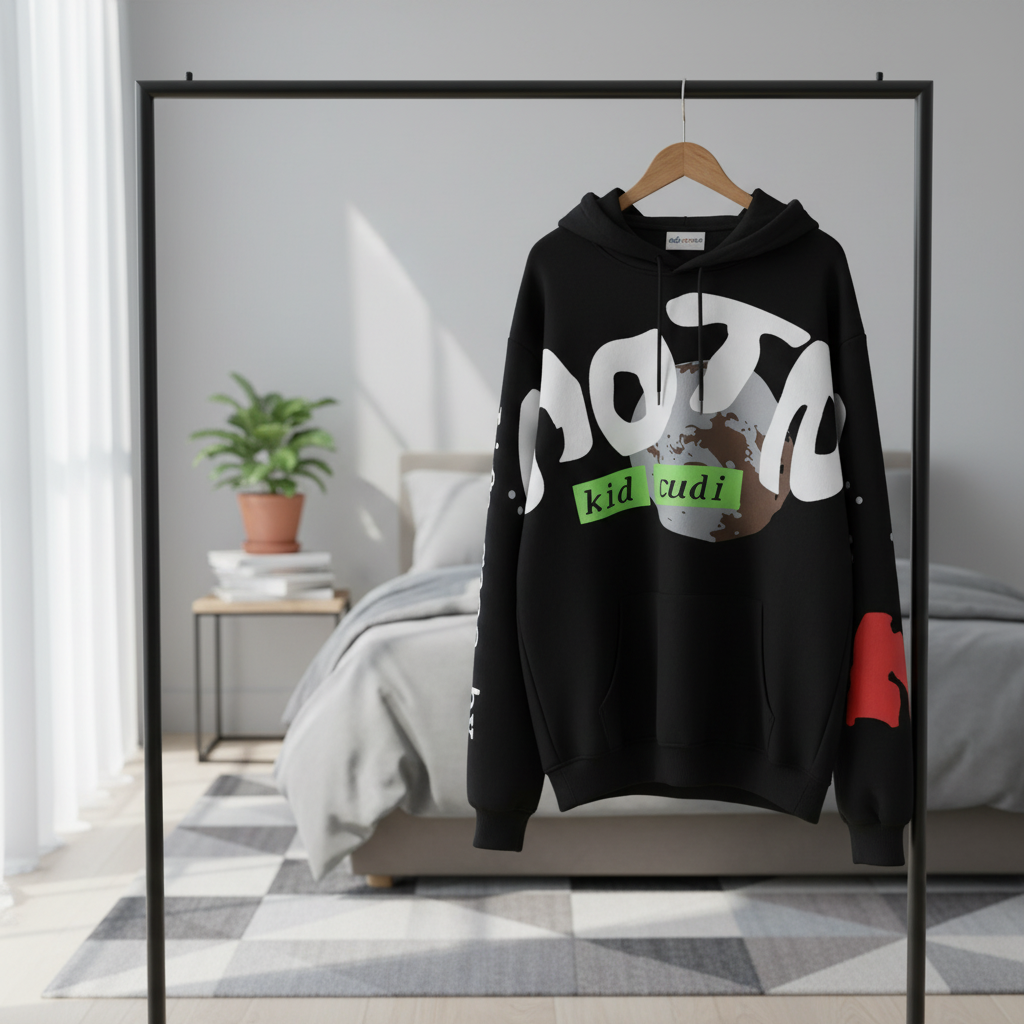 CPFM x Kanye West hoodie, premium cotton, soft and breathable, black unisex streetwear with Earth print and white lettering front, moon and text back, stylish, comfortable, and unique.