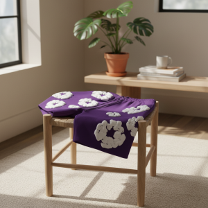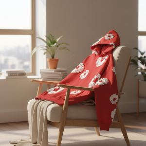 Denim Tears Grey Hoodie crafted from soft cotton with 3D white floral motifs, features a hood and kangaroo pocket for a unisex streetwear look that’s stylish and comfortable for daily wear.