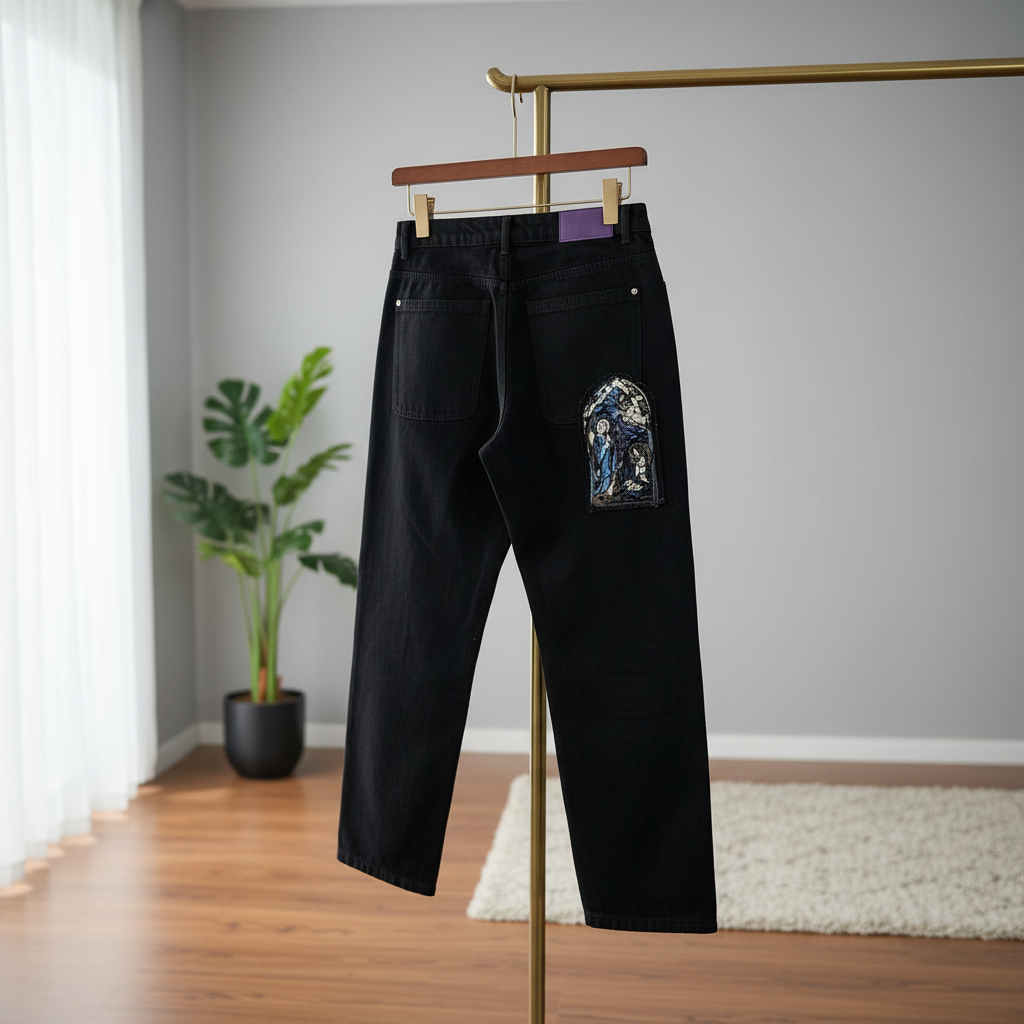 Home / Pants/Shorts/ Derschutze Black Jeans Art Patch Streetwear Pants