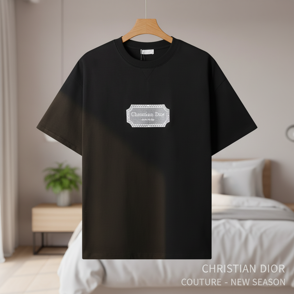 Christian Dior Classic Black Cotton T-Shirt features soft breathable fabric and a white label-style “Christian Dior Couture” motif. Unisex design for elegant casual wear with timeless luxury appeal.