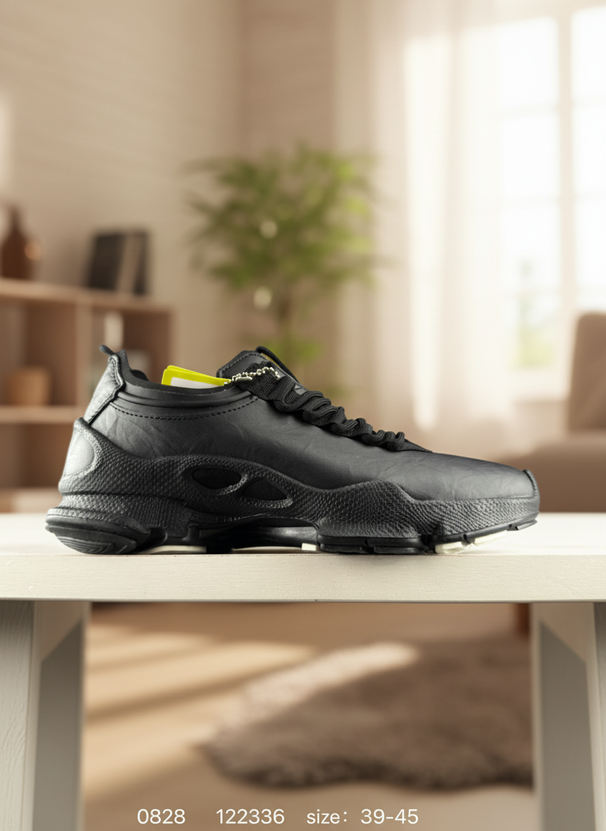Ecco Men Black Leather Running Sneakers 39-45