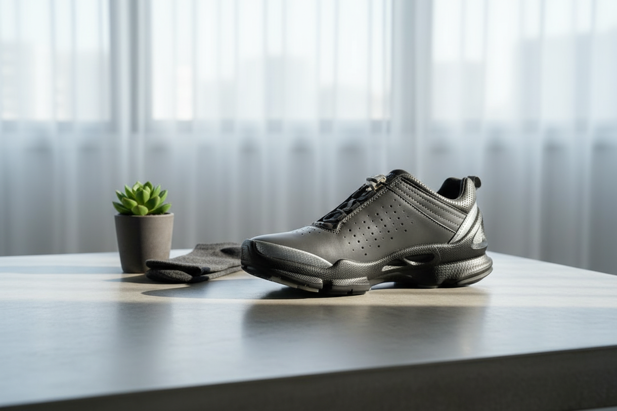 Ecco Men’s Gray Leather Sneakers Yellow Sole Shoes