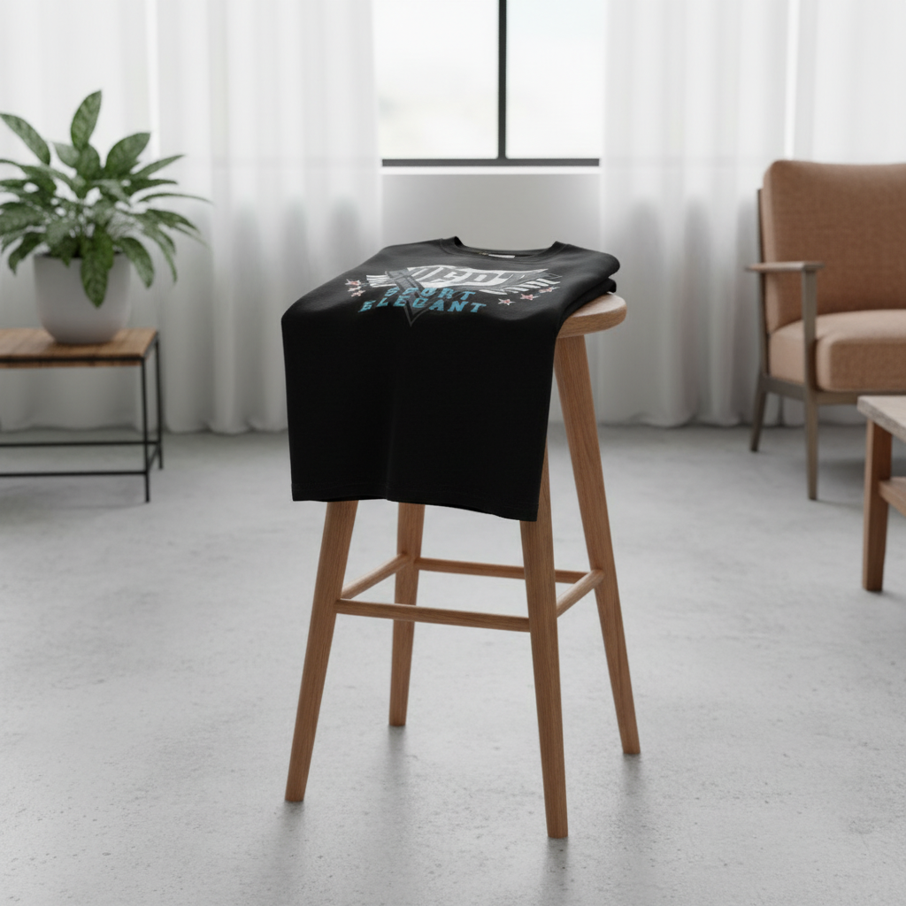 Gallery Dept black cotton T-shirt featuring “DEPT” and “SPORT ELEGANT” print with star graphics, unisex design, breathable comfort, perfect for streetwear and casual everyday outfits.