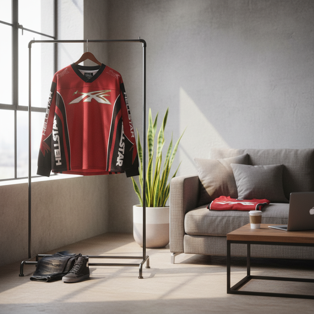 Hellstar Red Flame Skull Long Sleeve Jersey