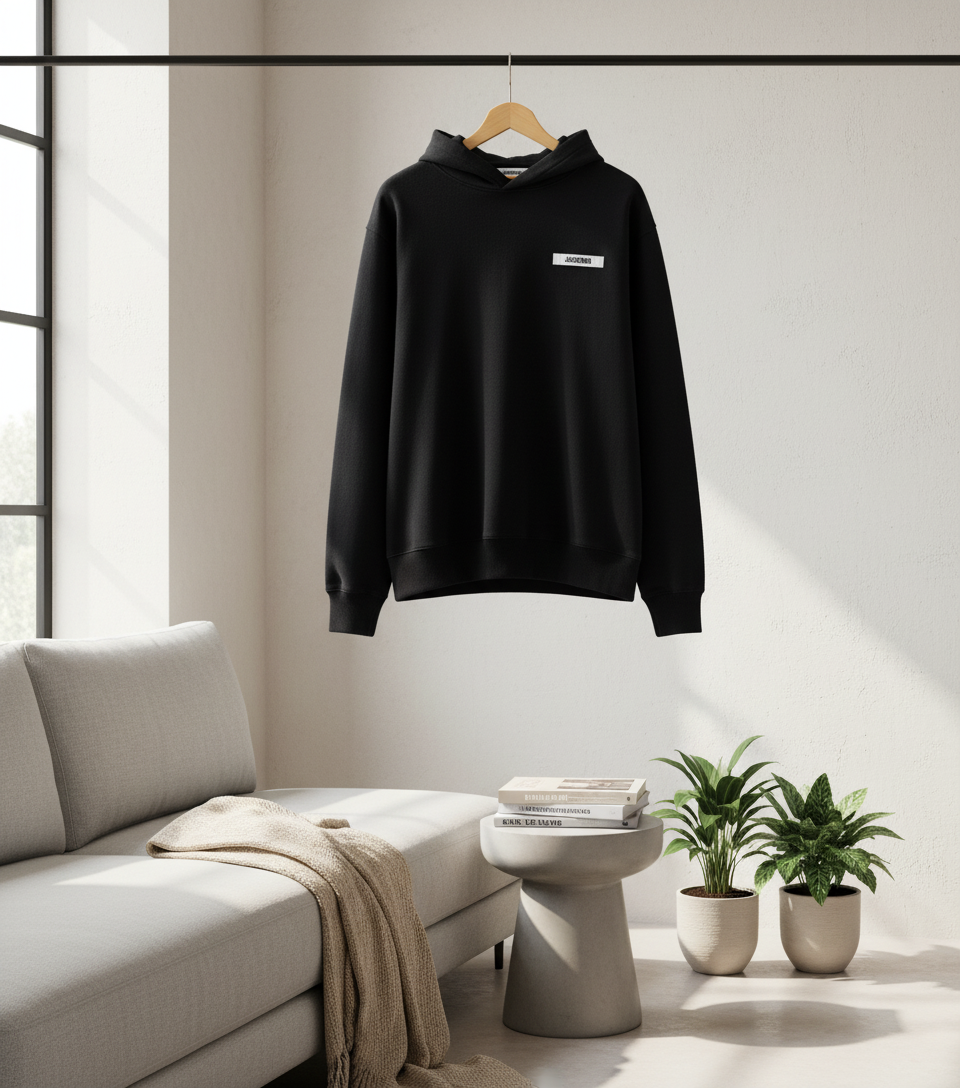 Jacquemus Black Cotton Hoodie, featuring premium fabric, minimalist design with white logo, unisex fit, French casual flair, breathable comfort, perfect for everyday stylish wear.