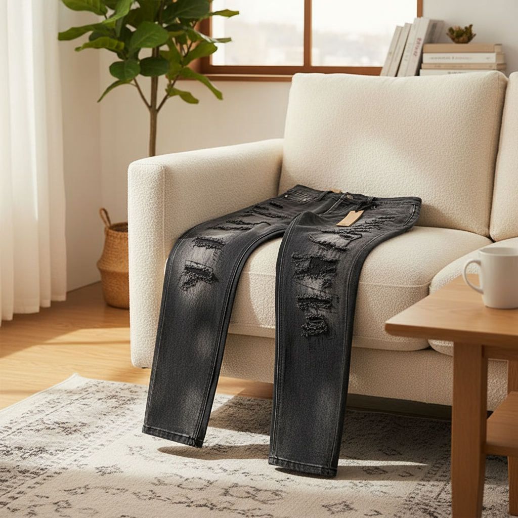 Ksubi Black Distressed Jeans crafted from premium denim with ripped details and bold back print. Unisex streetwear style offering comfort and individuality for everyday casual looks.