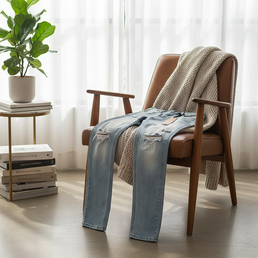 Ksubi Light Blue Distressed Skinny Jeans – Premium denim, street style design, unisex fit, ripped details for edgy look, bold logo, comfy versatile wear for daily casual outfits.
