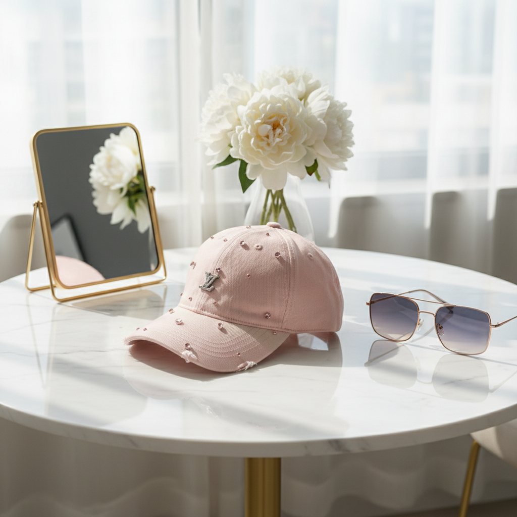 Home / Hats/ Louis Vuitton Pink Crystal Baseball Cap