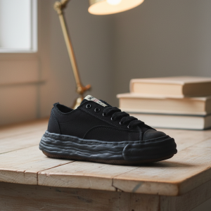 Maison Mihara Yasuhiro MMY BLAKE Black Canvas Sneakers, wrinkled toe, chunky sole, streetwear style, unisex design, comfy daily wear crafted by designer Mihara Yasuhiro.