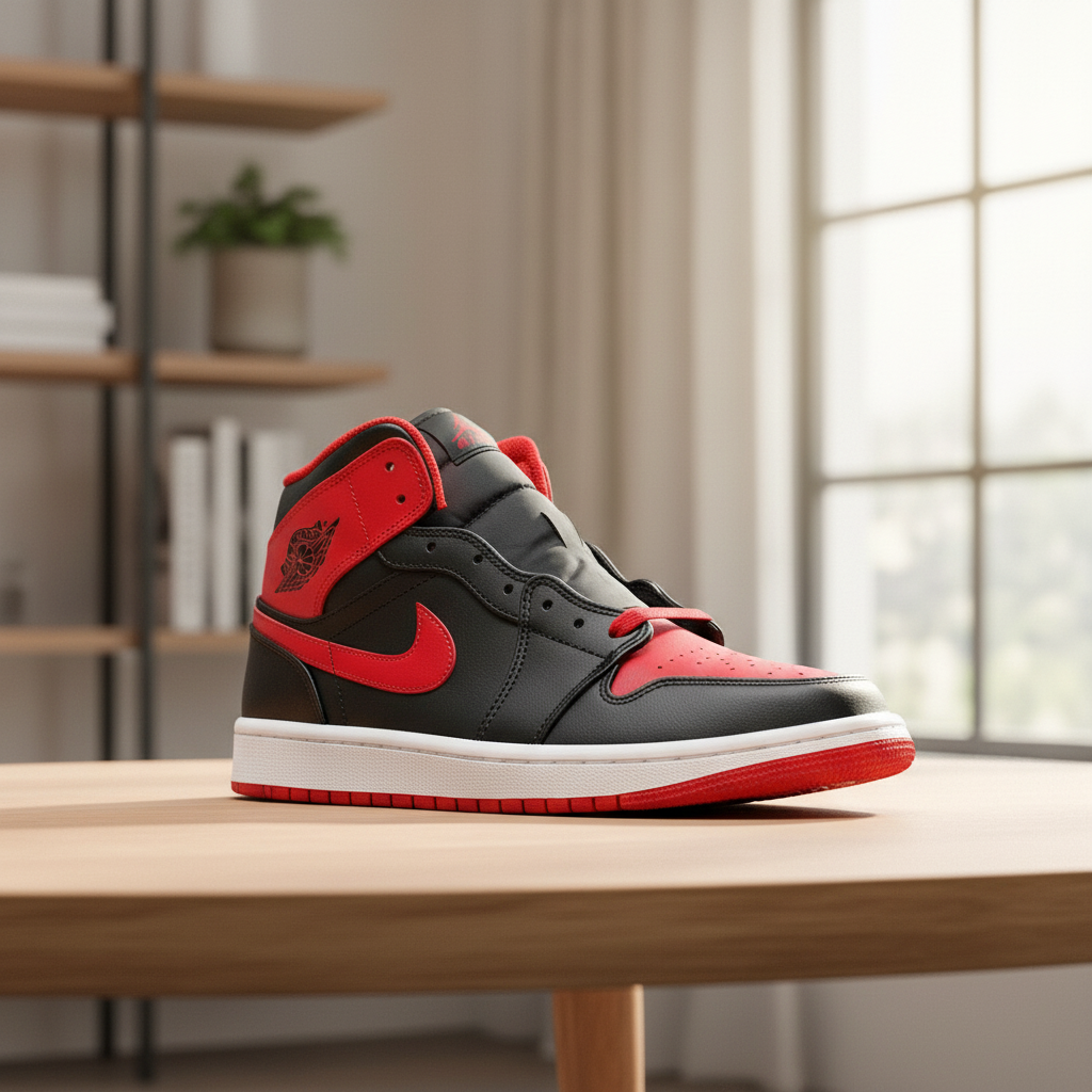 Nike Air Jordan 1 High Black Red sneakers crafted from premium leather, featuring iconic color contrast, cushioned comfort, ankle support, and timeless street style for men and women.