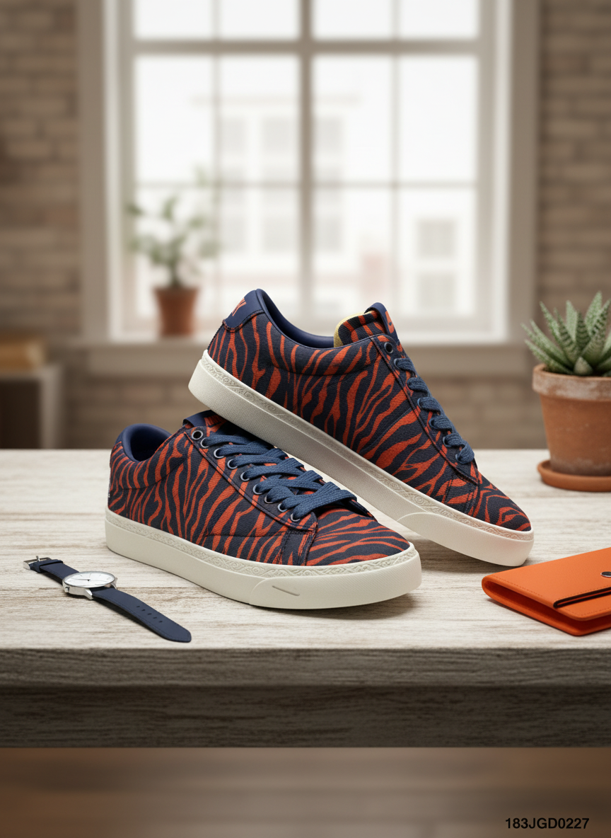 Home / Shoes/ Nike Tiger Stripe Canvas Sneakers Navy Orange