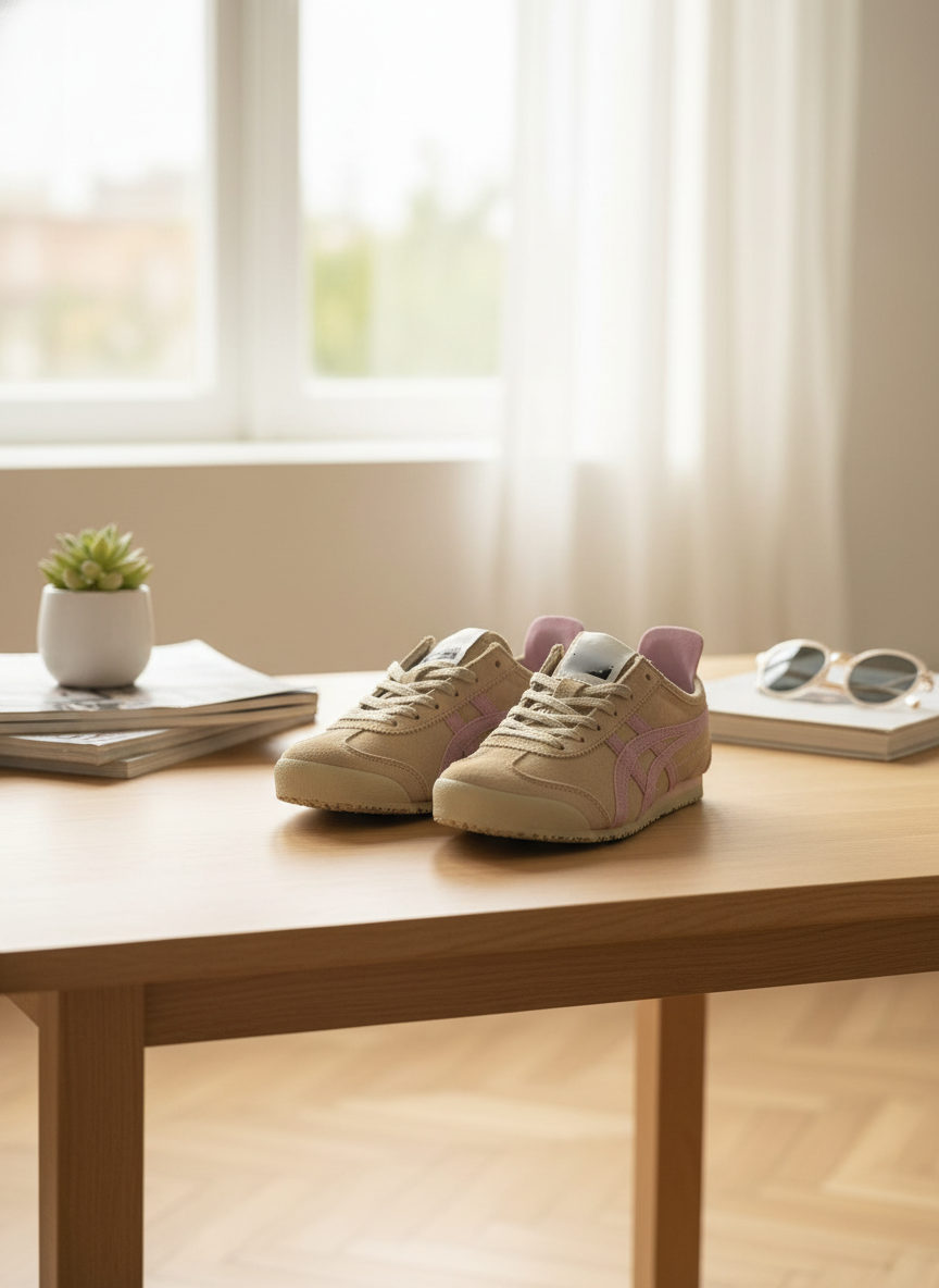 Home / Shoes/ Onitsuka Tiger Beige Pink Suede Casual Sneakers