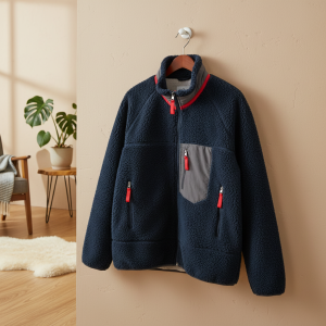 Patagonia Outdoor Casual Series navy and red colorblock windproof jacket, made with functional fabric, stand collar zipper design, unisex, warm, stylish, perfect for daily outdoor wear.