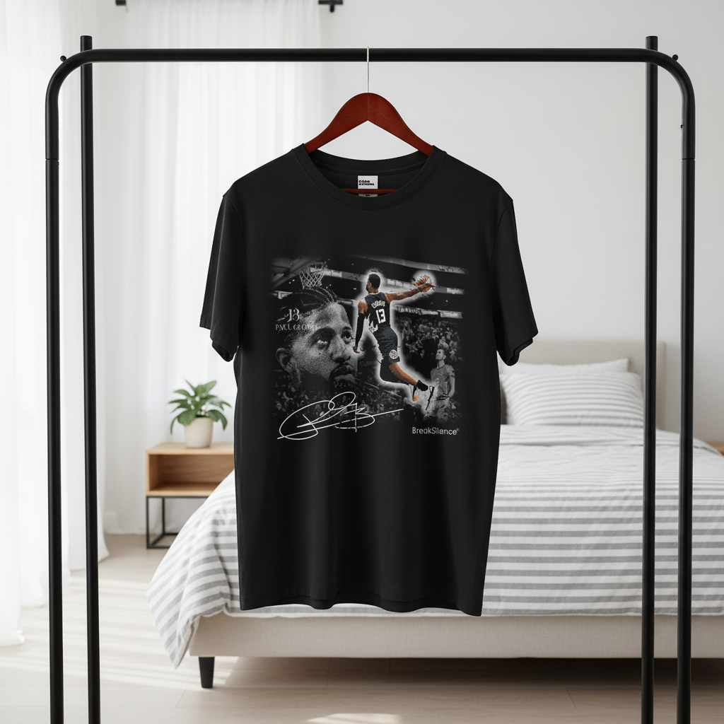 Saint Micheal Basketball Black T-Shirt, premium cotton for comfort and breathability, features Paul George graphic and signature design, unisex streetwear for stylish everyday casual looks.