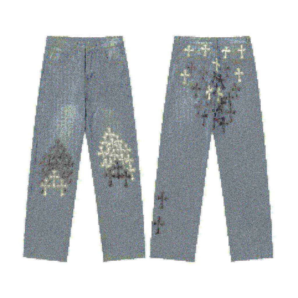 Home / Pants/Shorts/ Spring Summer Straight Leg Leather Patch Denim Pants Slate Grey