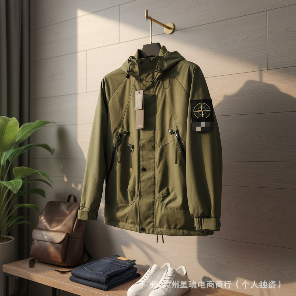 Stone Island Beige Hooded Windbreaker Jacket Men