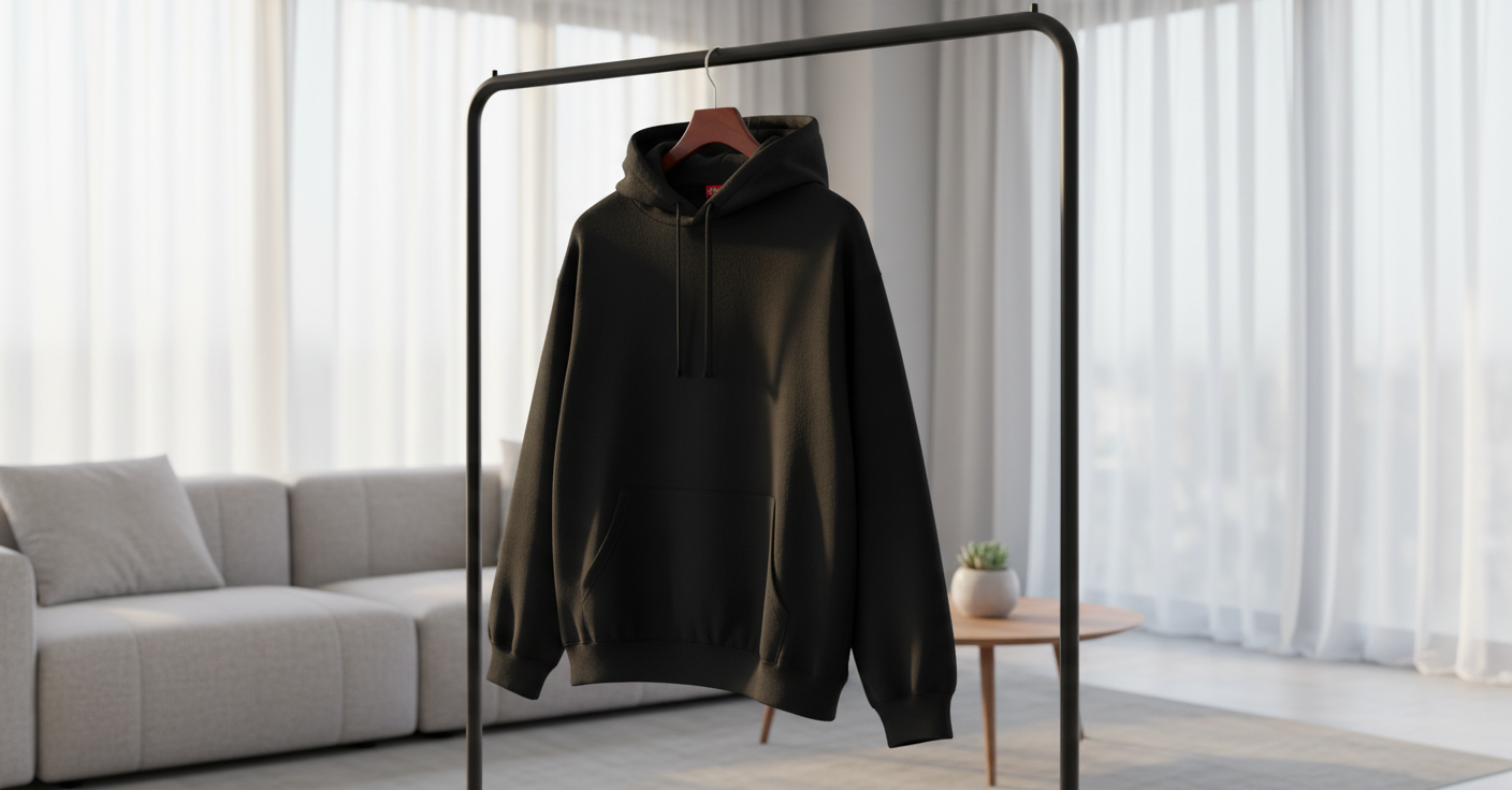 Supreme Black Cotton Hoodie, classic streetwear design with drawstring hood and bold vertical white logo on back, unisex, warm and casual, perfect for daily wear and trendy outfits.