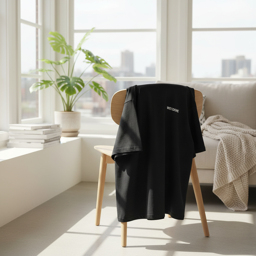 WE11DONE Black Cotton T-Shirt, featuring white front logo and minimal back tag design. Unisex streetwear style, soft breathable fabric for daily comfort and effortless casual looks.