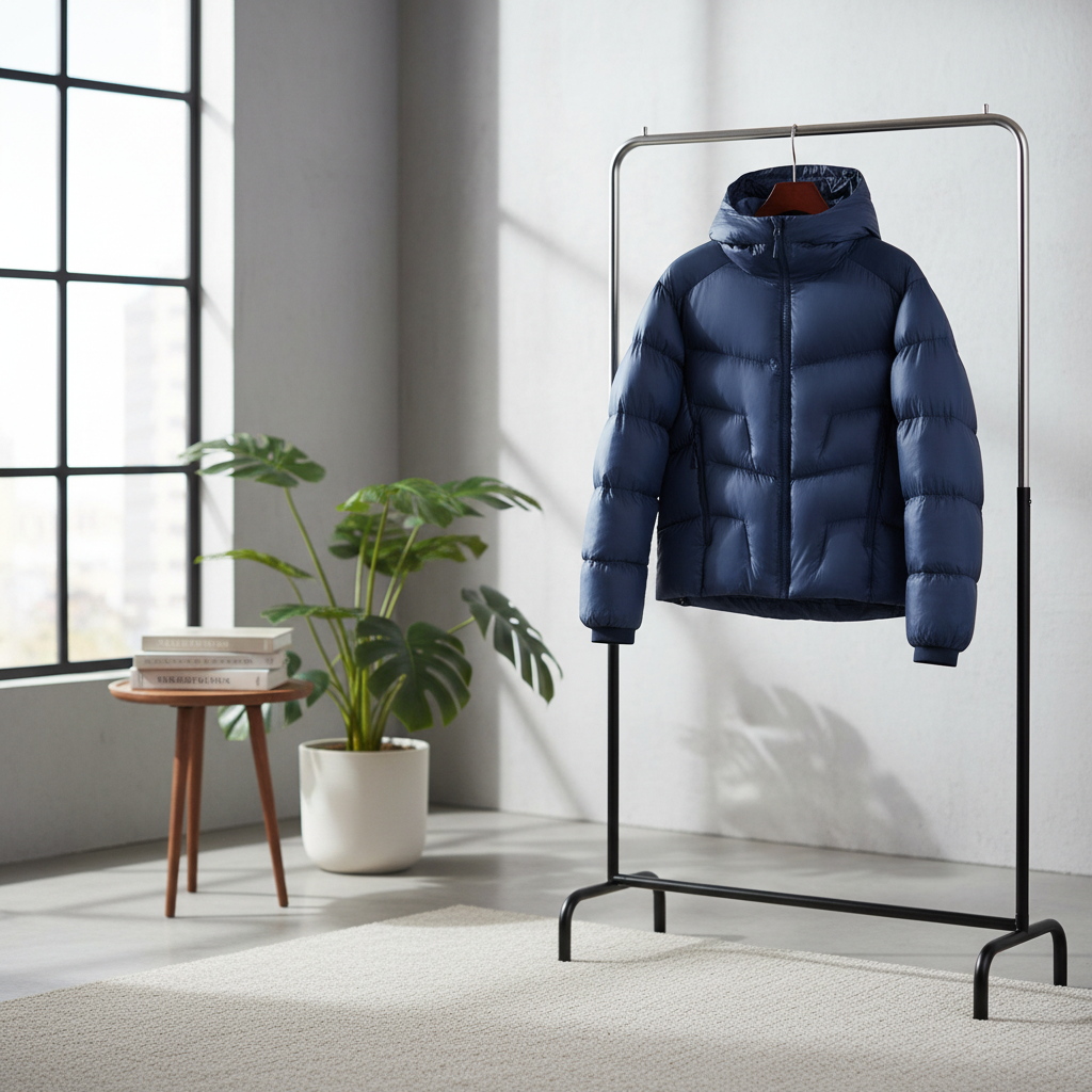 UNIQLO Classic Series Deep Blue Hooded Down Jacket, windproof fabric, ultra-warm down filling, minimalist unisex design, casual everyday wear, comfortable and versatile winter outerwear.