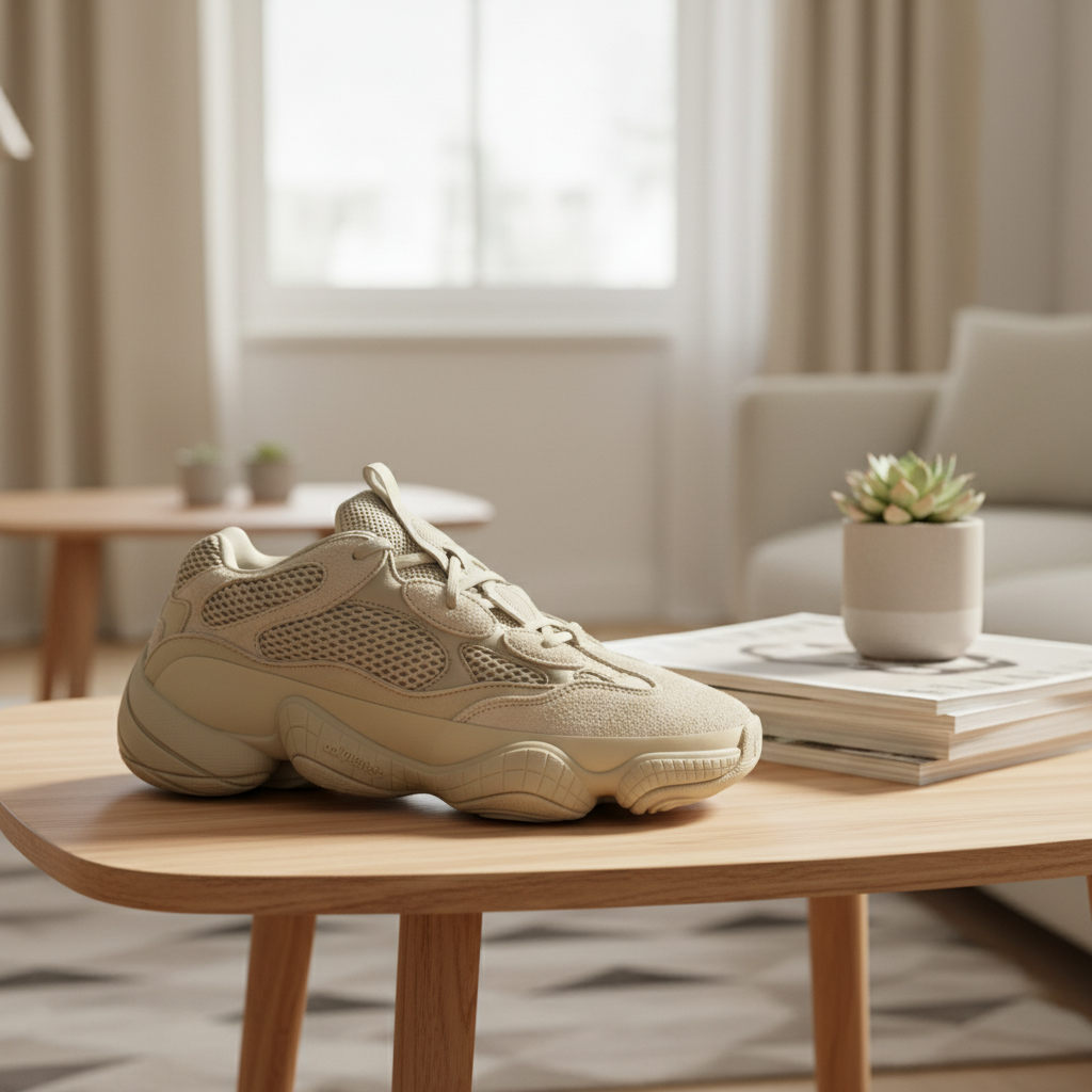 Yeezy 500 Light Beige Sneakers blend mesh and suede in a retro chunky design with cushioned sole, unisex fit, and streetwear style crafted for ultimate comfort and fashion.