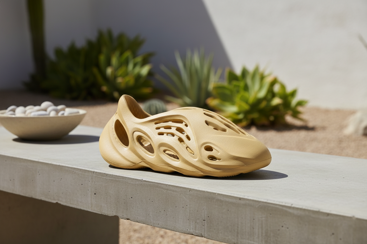 Yeezy Foam Runner Beige: Lightweight foam clogs with breathable cutout design, sleek streetwear style, unisex fit, comfortable and casual, perfect for everyday wear and summer fashion.
